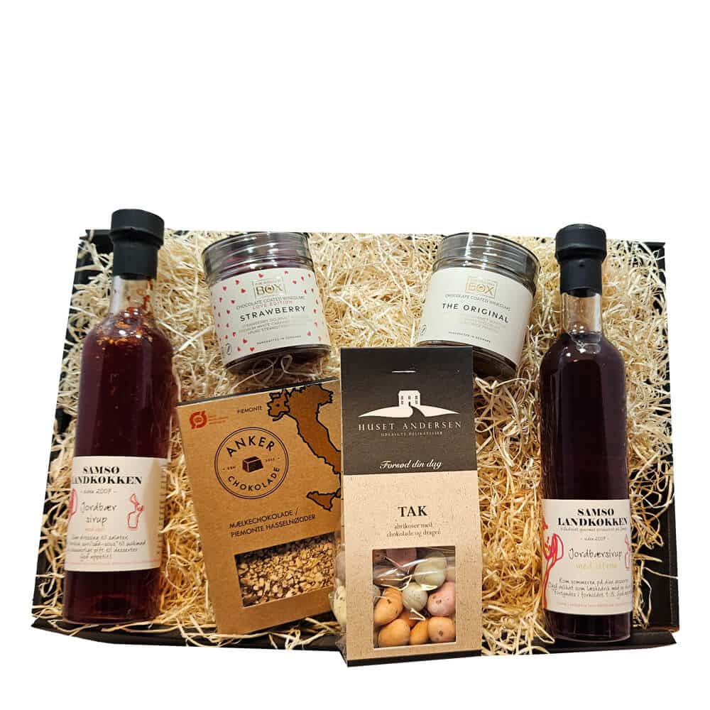 Vi har fundet Gavekurv: Dansk Jordbærsirup Chokolade Vingummi hos smagfuld danmark i kategorien . Dansk Jordbærsirup, Chokolade og Vingummi En Smagfuld Gave til HendeLeder du efter den perfekte værtindegave, takke-gave eller en skøn gavekurv til hende Denne smagfulde gavekurv er fyldt med danskproducerede lækkerier, der kombinerer søde jordbærnuan