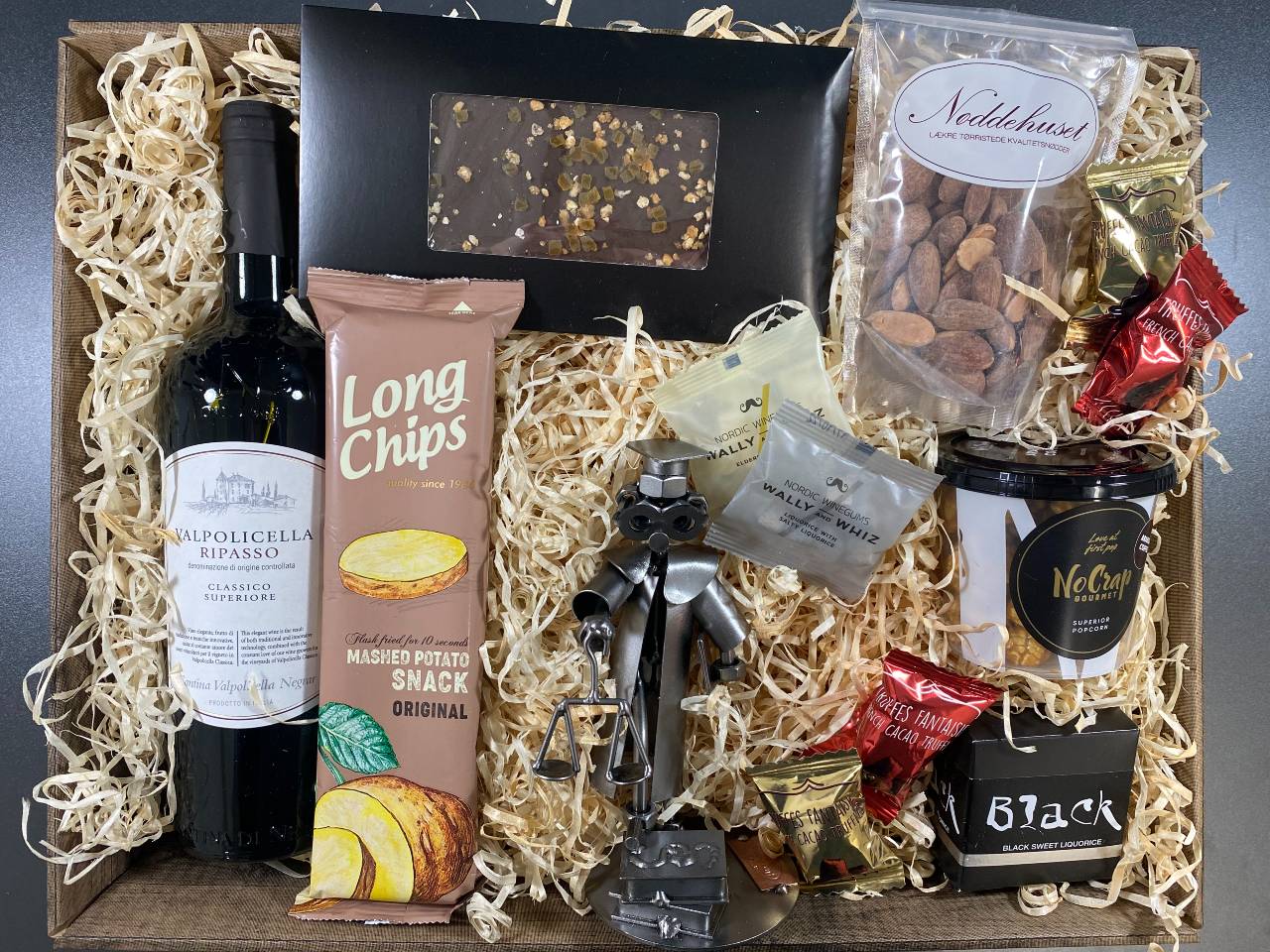 Produkt id: gavekurv-med-metalfigur-advokat-jurist-vin-hygge