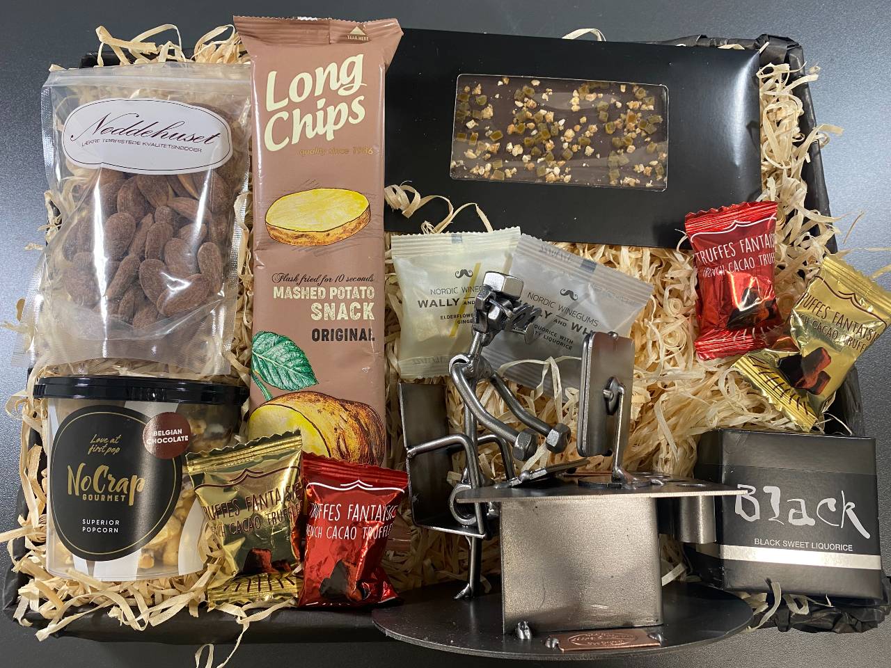 Produkt id: gavekurv-med-metalfigur-computer-programmør-systemudvikler-lækkerier