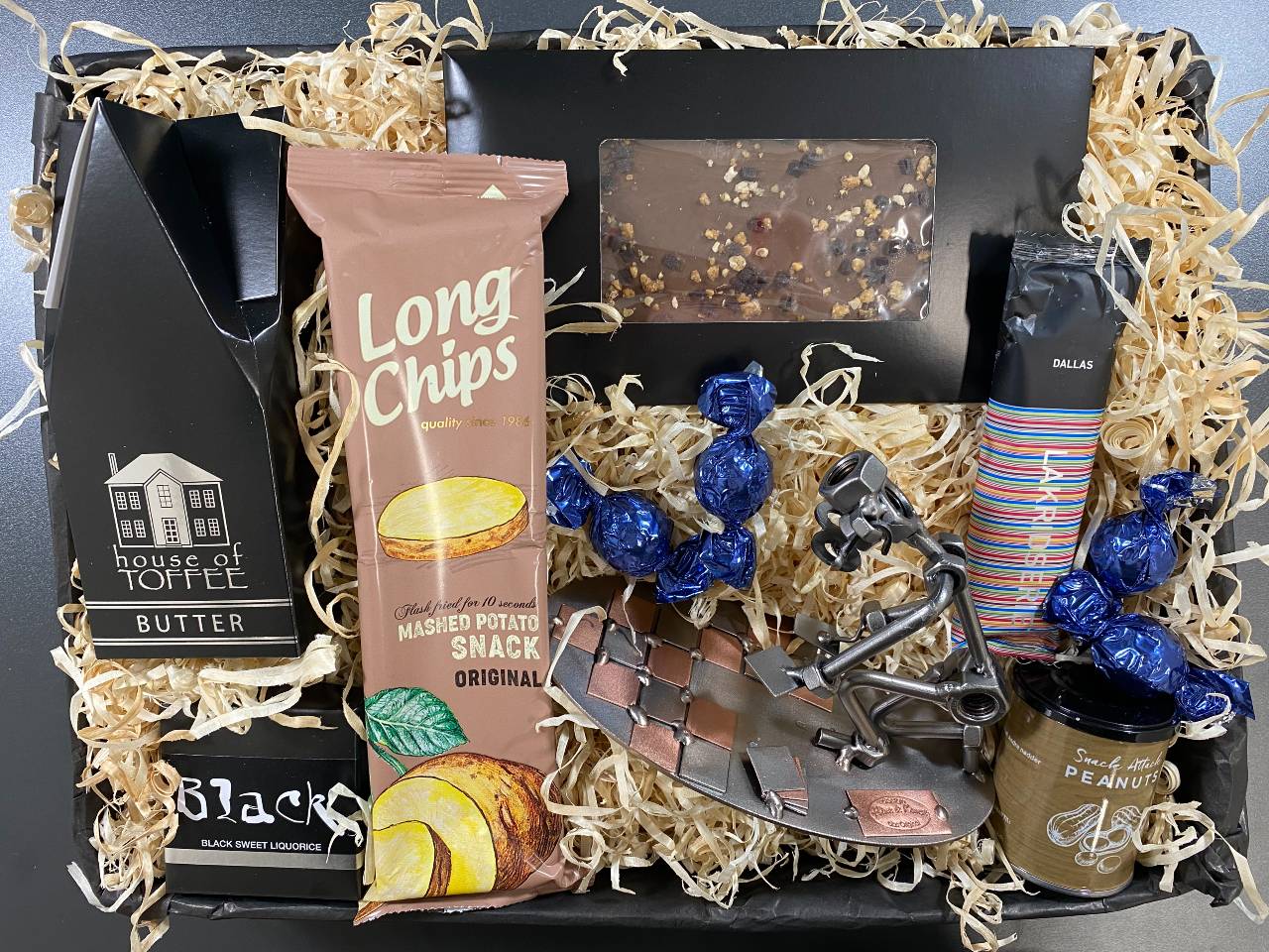 Vi har fundet Gavekurv Med Metalfigur Flisemurer Lækkerier hos design og handelshuset i kategorien . Nu kan du få din fagmetalfigur indpakket sammen med skønne specialiteter. Denne gavekurv er med spændende specialiteter der er lige til at nyde og hygge med. Vælg en af vores gavekurve med metalfigur hvis du ønsker at give en speciel gave til svendegav