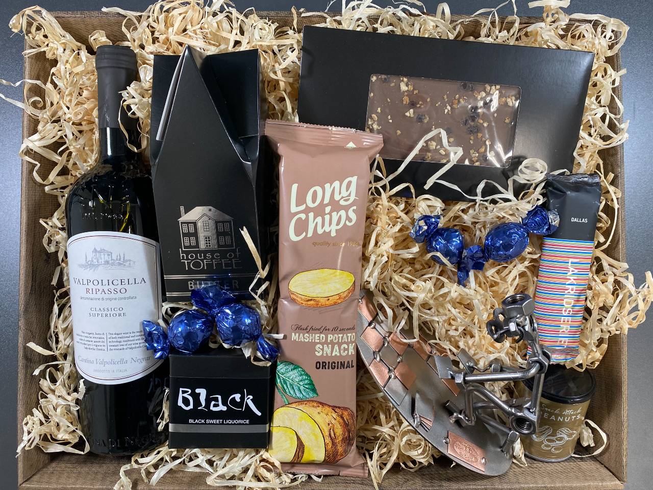 Vi har fundet Gavekurv Med Metalfigur Flisemurer Vin Hygge hos design og handelshuset i kategorien . Nu kan du få din fagmetalfigur indpakket sammen med skønne specialiteter. Denne gavekurv er med en god rødvin og lækkerier, der er lige til at nyde af modtageren af gavekurven. Vælg en af vores gavekurve med metalfigur hvis du ønsker at give en speciel
