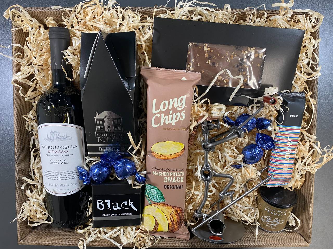 Vi har fundet Gavekurv Med Metalfigur Kvindelig Maler Bygningsmaler Vin Hygge hos design og handelshuset i kategorien . Nu kan du få din fagmetalfigur indpakket sammen med skønne specialiteter. Denne gavekurv er med en god rødvin og lækkerier, der er lige til at nyde af modtageren af gavekurven. Vælg en af vores gavekurve med metalfigur hvis du ønsker at give en speciel