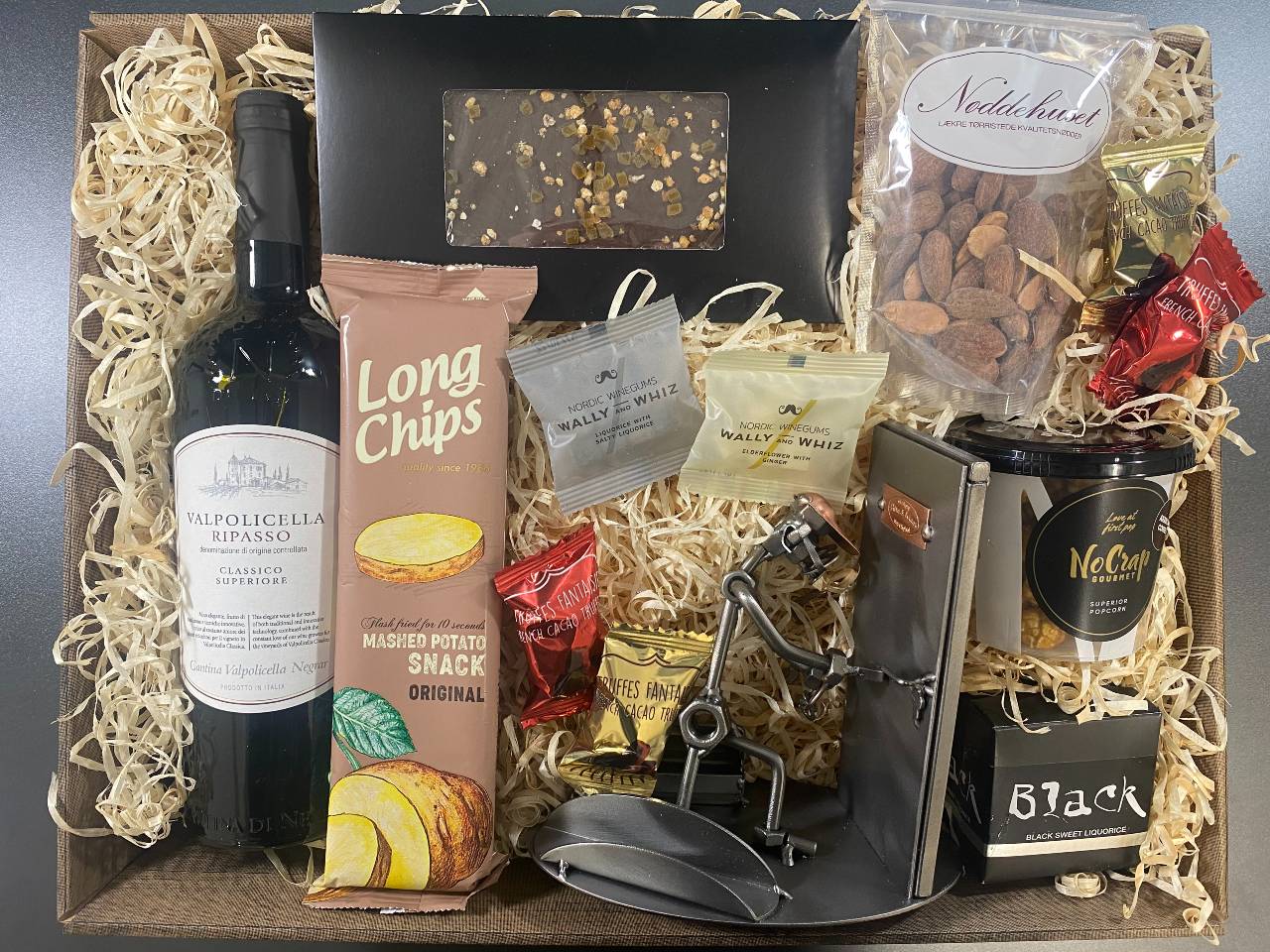 Produkt id: gavekurv-med-metalfigur-låsesmed-vin-hygge