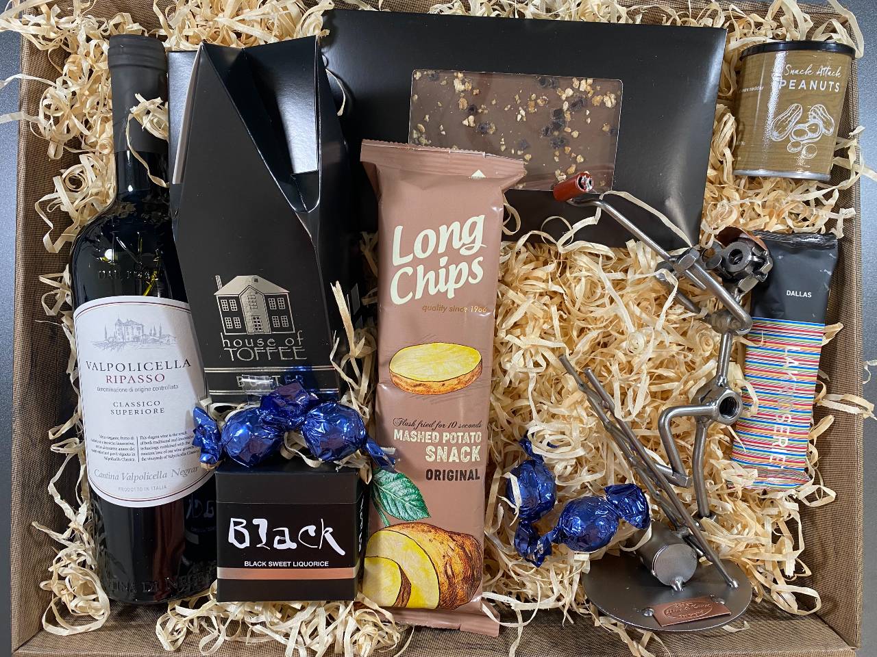 Vi har fundet Gavekurv Med Metalfigur Maler Vin Hygge hos design og handelshuset i kategorien . Nu kan du få din fagmetalfigur indpakket sammen med skønne specialiteter. Denne gavekurv er med en god rødvin og lækkerier, der er lige til at nyde af modtageren af gavekurven. Vælg en af vores gavekurve med metalfigur hvis du ønsker at give en speciel
