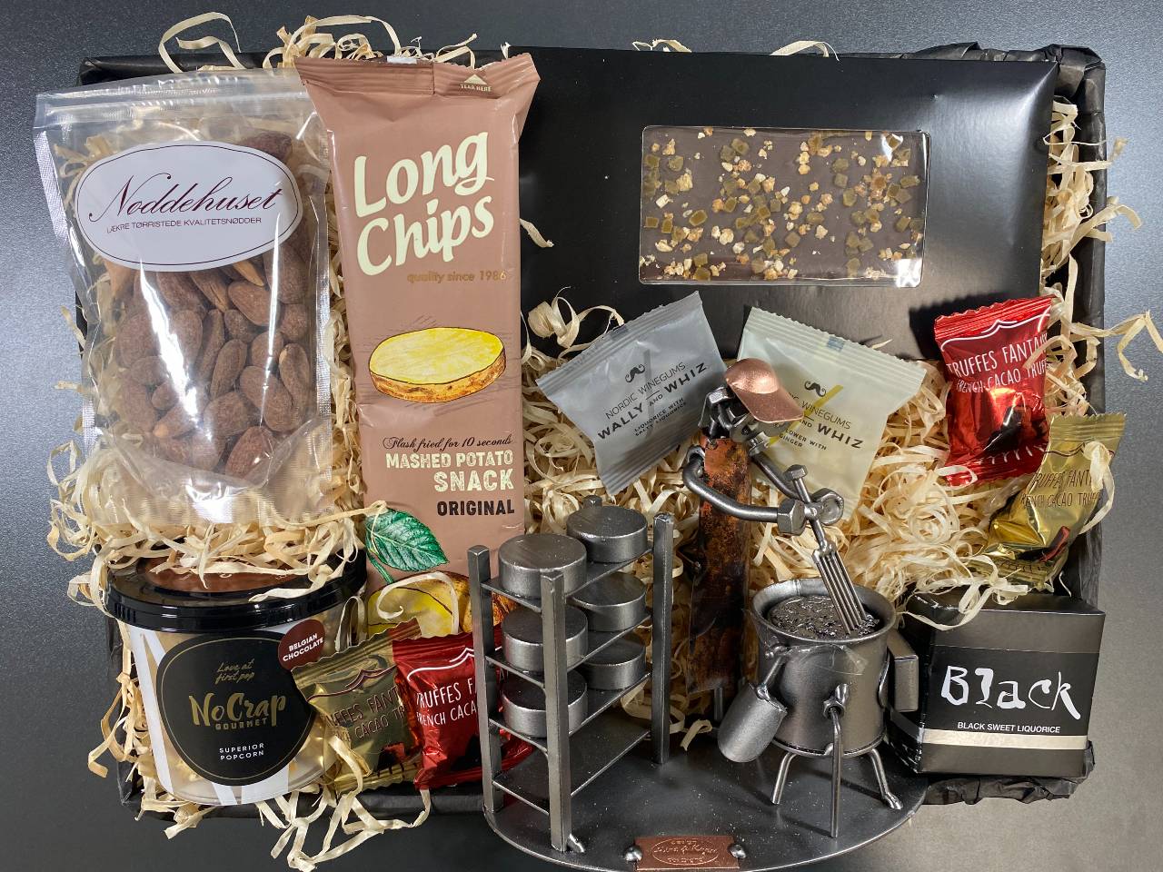 Produkt id: gavekurv-med-metalfigur-mejerist-mejeritekniker-lækkerier
