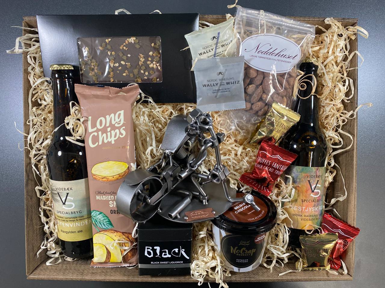 Produkt id: gavekurv-med-metalfigur-motorcykelmekaniker-hygge