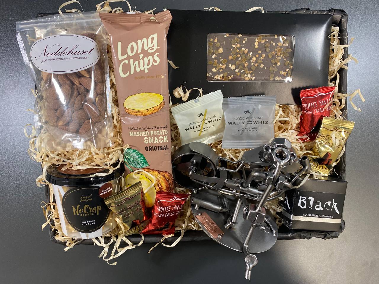 Produkt id: gavekurv-med-metalfigur-motorcykelmekaniker-lækkerier