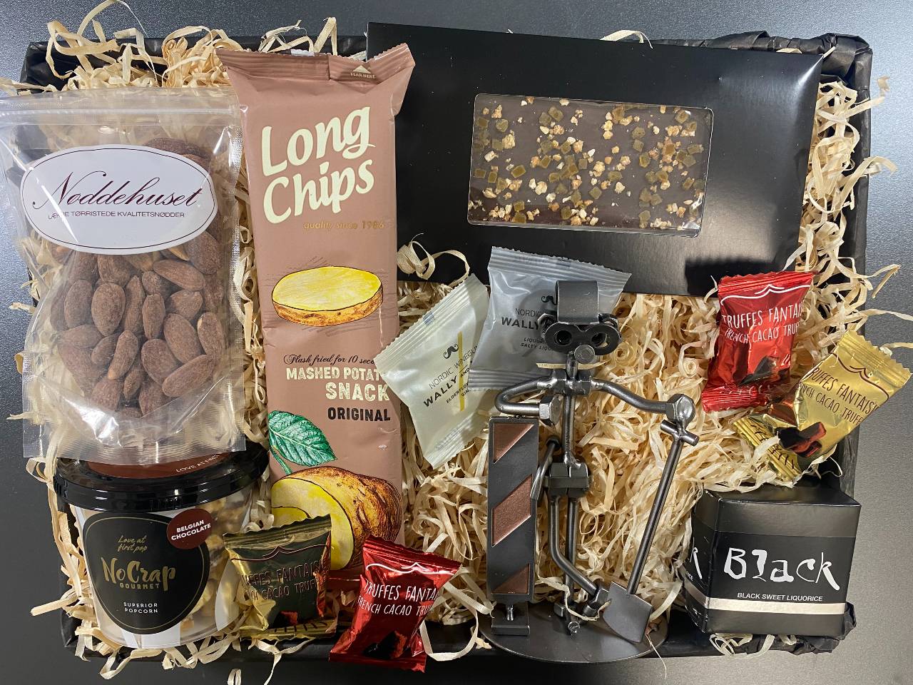 Produkt id: gavekurv-med-metalfigur-vejarbejder-lækkerier