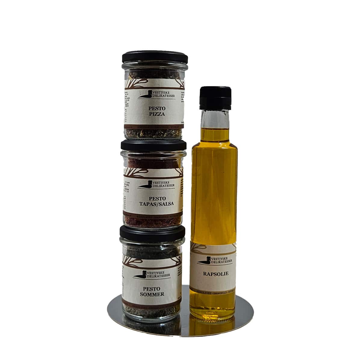 Vi har fundet Gavekurv Pesto Pakken hos smagfuld danmark i kategorien . En smagfuld hilsen fra VestjyllandDenne skønne gavekurv, Pesto pakken, bringer et udvalg af produkter fra Vestjyske Delikatesser direkte til dit bord. Kurven er sammensat for at give en varieret smagsoplevelse med fokus på pesto og rapsolie. Hvert produ
