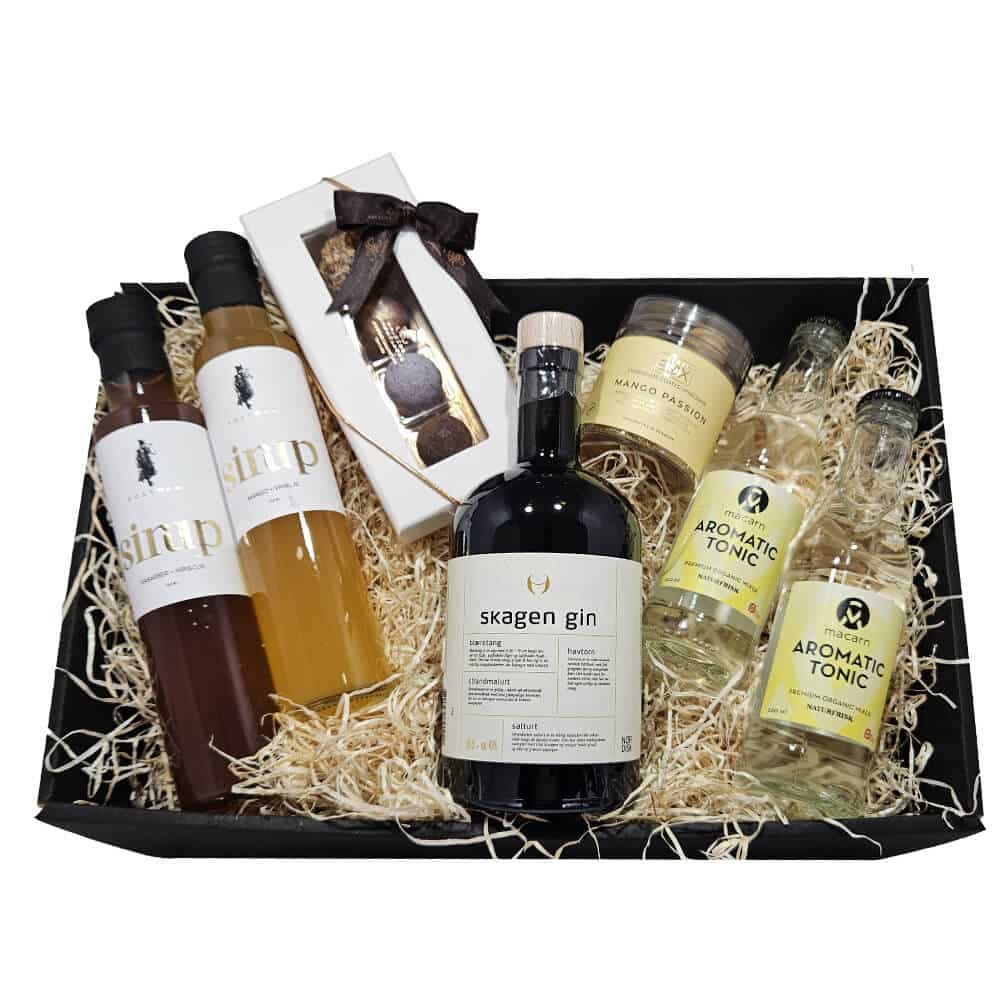 Vi har fundet Gavekurv: Skagen Gin Sirup Luksus Chokolade hos smagfuld danmark i kategorien . Skagen Gin, sirup og luksus chokolade – perfekt luksus gavekurvTag med på en smagsrejse, der starter ved Danmarks nordligste punkt og bevæger sig gennem eksotiske frugter, håndlavet chokolade og luksuriøse delikatesser. Skagen Gin, sirup og luksus choko
